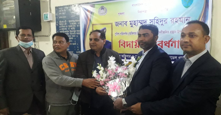 সুনামগঞ্জ সদর থানার ওসি সহিদুর রহমানের বদলি উপলক্ষে বিদায়ী সংবর্ধনা