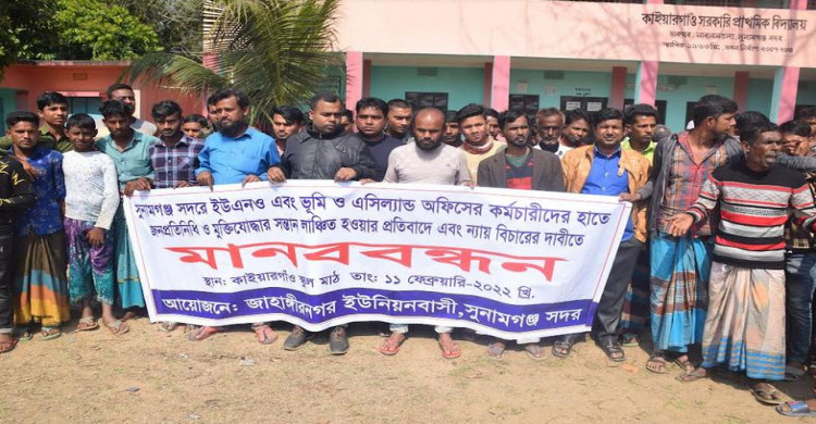 মুক্তিযোদ্ধার সন্তানসহ জনপ্রতিনিধি লাঞ্ছিত, নির্বাহী অফিসারের অপসারণের দাবিতে মানববন্ধন