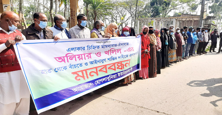 মোড়েলগঞ্জে চিহ্নিত চাঁদাবাজ-মামলাবাজদের শাস্তির দাবিতে মানববন্ধন