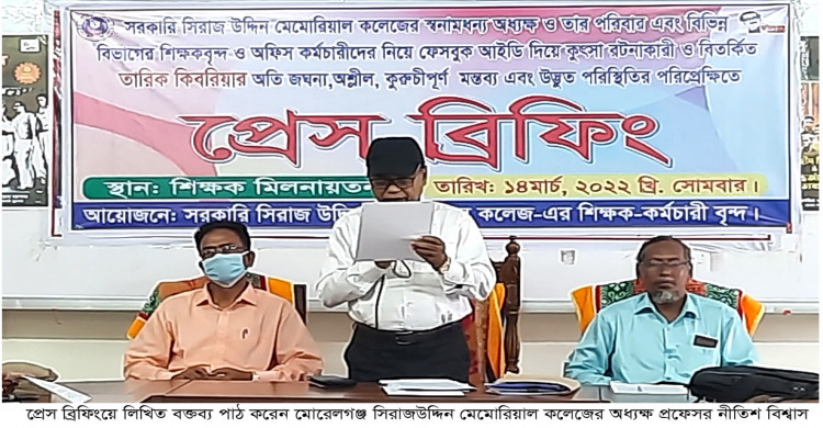 মোড়েলগঞ্জে কলেজ অধ্যক্ষের বিরুদ্ধে ফেসবুকে কুরুচিপূর্ণ স্ট্যাটাসের প্রতিবাদের প্রেস ব্রিফিং