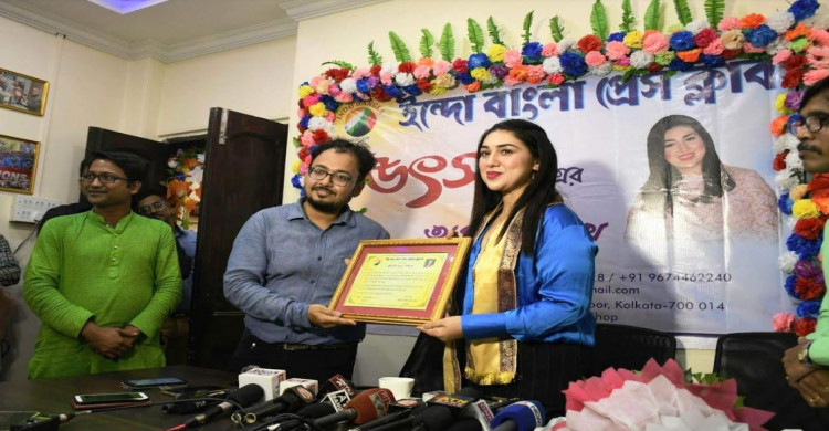 ওপারে অপু বিশ্বাসকে সংবর্ধনা
