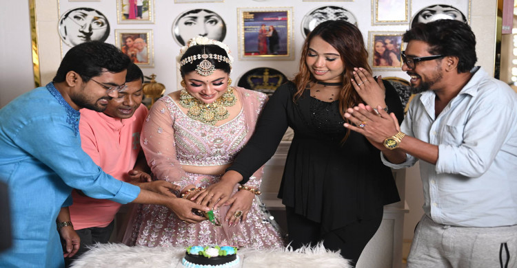 বধূবেশে কেক কাটলেন অপু বিশ্বাস