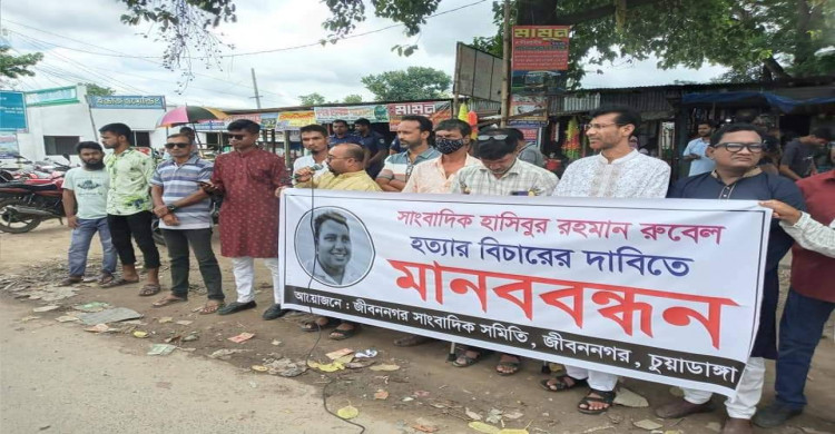 সাংবাদিক রুবেল হত্যার প্রতিবাদে জীবননগরে সাংবাদিকদের মানববন্ধন