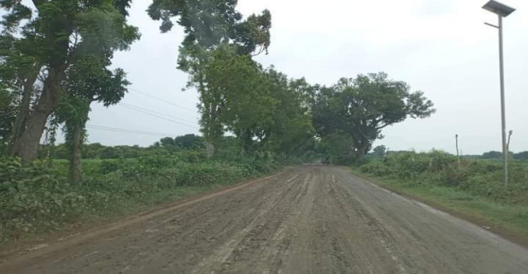 জীবননগরের ট্রাক্টর থেকে মাটি পড়ে সড়কের বেহাল দশা