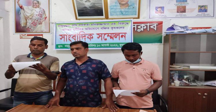 দামড়ুহুদায় কৃষি কর্মকর্তা মনিরুজ্জামানের বিরুদ্ধে সুবিধা বঞ্চিত কৃষকদের সাংবাদিক সম্মেলন