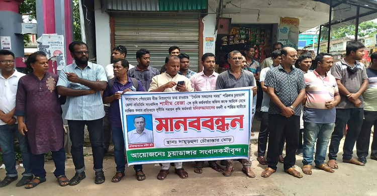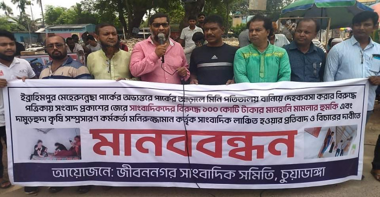 জীবননগরে সাংবাদিক নির্যাতনের প্রতিবাদে মানববন্ধন
