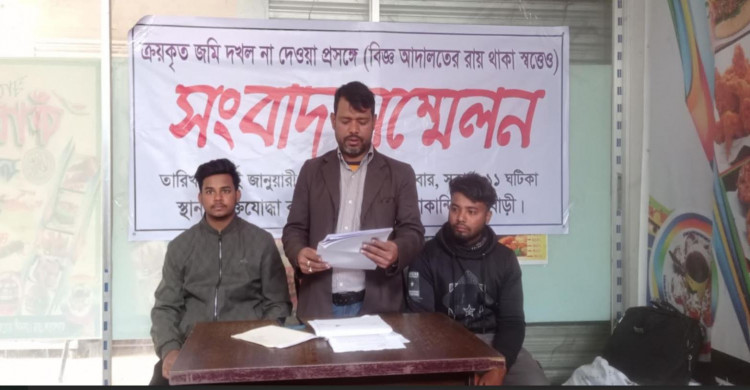 বালিয়াকান্দিতে জমির দখল বুঝে পেতে ব্যবসায়ীর সংবাদ সম্মেলন