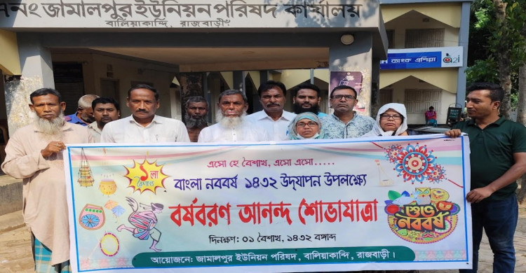 বালিয়াকান্দির জামালপুরে নববর্ষ উপলক্ষে আনন্দ শোভাযাত্রা