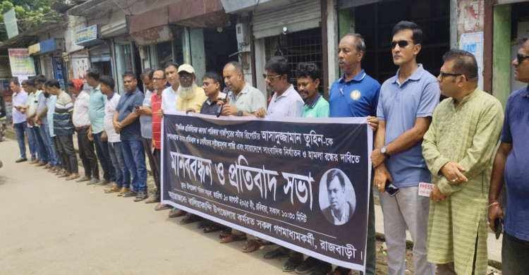 সাংবাদিক তুহিন হত্যাকারীদের গ্রেপ্তার ও শাস্তির দাবীতে বালিয়াকান্দিতে মানববন্ধন