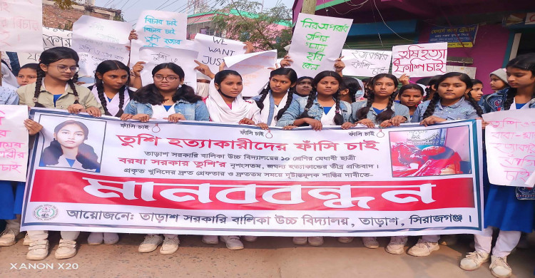তাড়াশে তুষি হত্যাকারী রাজিবের মৃত্যুদন্ড চেয়ে মানববন্ধন