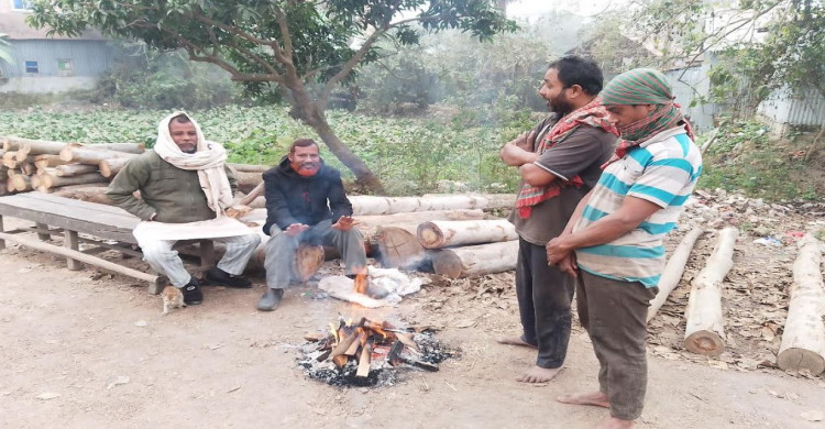 তাড়াশে তীব্র ঠান্ডায় আগুনের তাপে শ্রমিকরা