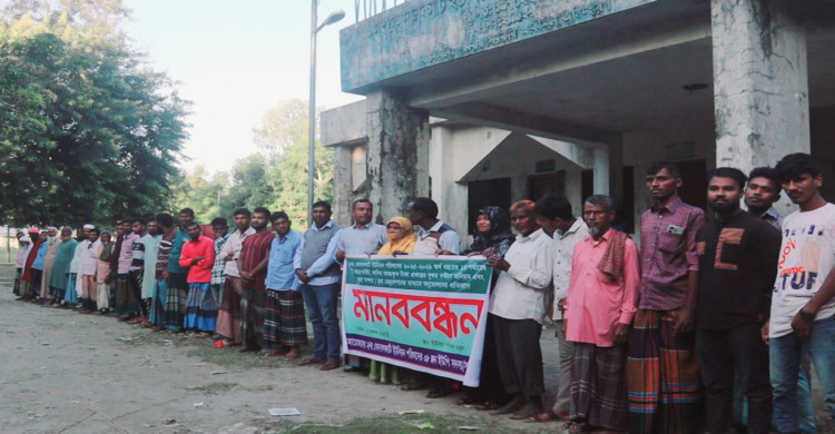 রাজিবপুরের কোদালকাটিতে টিআর, কাবিখা ও কাবিটা প্রকল্পে সুষম বণ্টনে অনিয়ম এর প্রতিবাদে মানববন্ধন