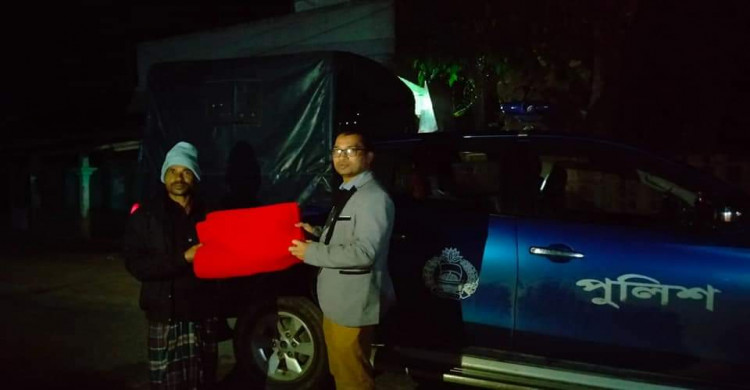 জুড়ীতে গভীর রাতে ওসি সঞ্জয় চক্রবর্তীর কম্বল বিতরণ