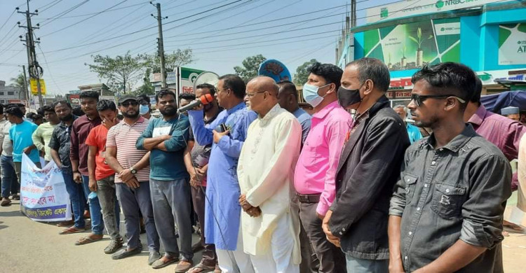 জুড়ীতে শেখ রাসেল মিনি স্টেডিয়ামের স্থান পরিবর্তনের দাবিতে মানববন্ধন