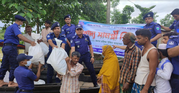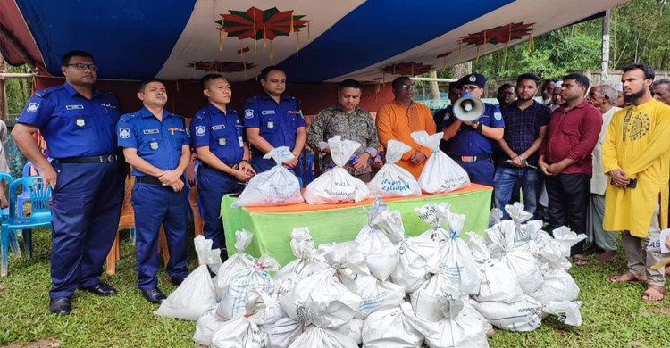 জুড়ীতে আইজিপির পক্ষে পুলিশ সুপার জাকারিয়ার ত্রাণ বিতরণ