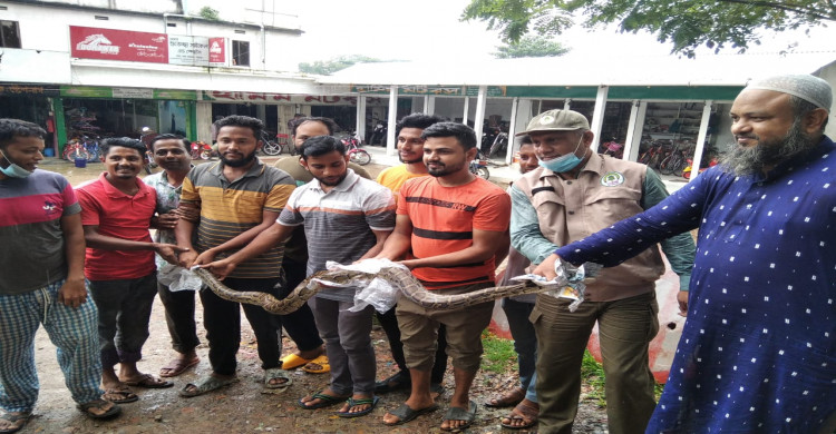 জুড়ীতে খাদ্যের সন্ধানে লোকালয়ে অজগর, উদ্ধার করে অবমুক্ত