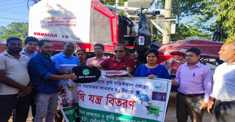 জুড়ীতে কৃষকের মাঝে কম্বাইন হারভেস্টার মেশিন বিতরণ