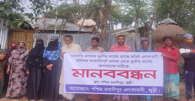 জুড়ীতে লেয়ার মুরগির খামার বন্ধের দাবিতে মানববন্ধন