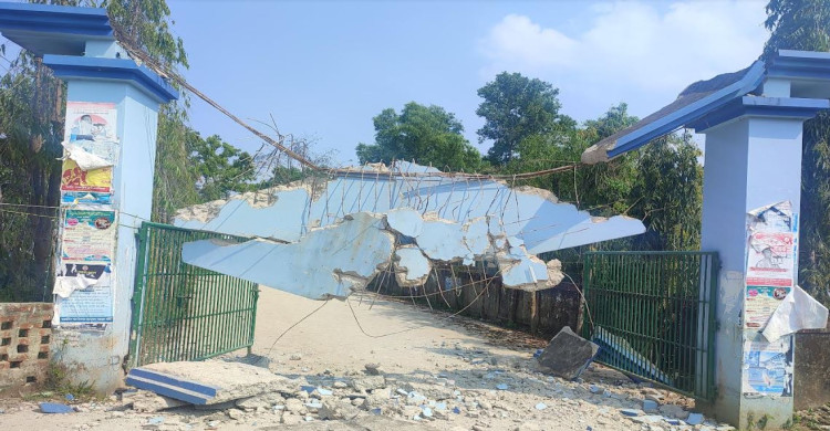 জুড়ীতে বে-রসিক ড্রাইভার : ট্রাকের ধাক্কায় উপজেলার প্রধান ফটক বিধ্বস্ত
