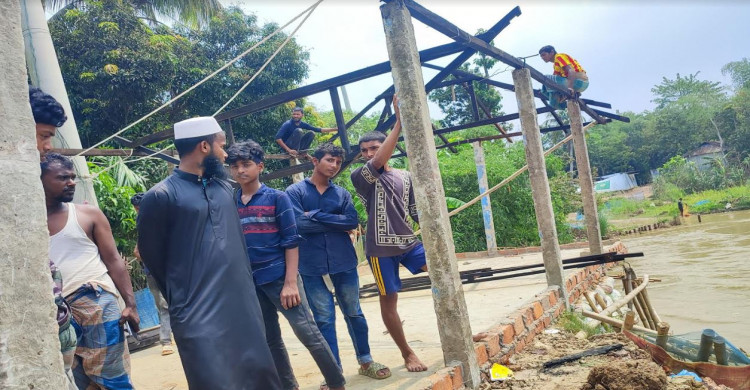 জুড়ীতে পাহাড়ি ঢলে নদীগর্ভে ঘরবাড়ি ও বিলীনের পথে চলাচলের রাস্তা