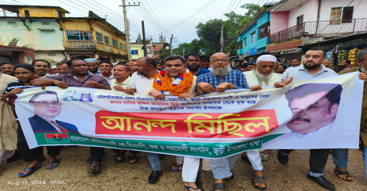 কারা নির্যাতিত বিএনপি নেতা মিঠুর আগমনে জুড়ীতে আনন্দ মিছিল