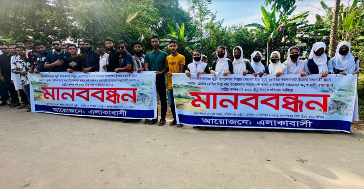 জুড়ীতে নদী থেকে বালু উত্তোলন বন্ধের দাবিতে মানববন্ধন