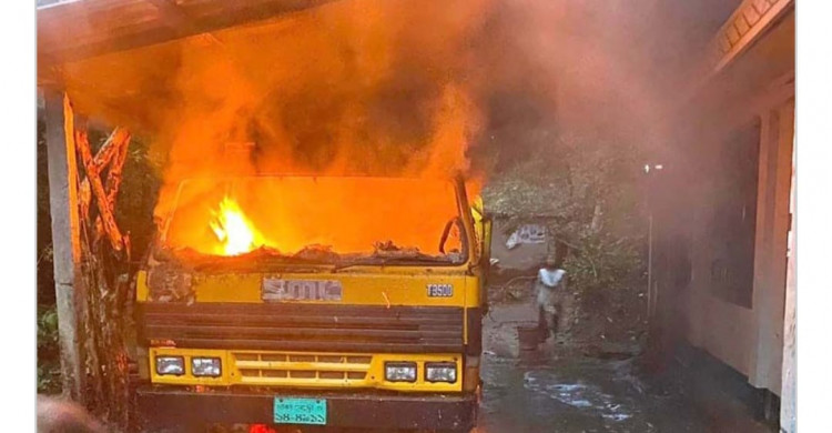 বড়লেখায় দুর্বৃত্তদের আগুনে পুড়ল ট্রাক