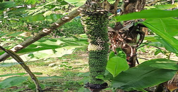 কমলগঞ্জে ৭ ফুট লম্বা কাঁদিতে ধরেছে হাজারের বেশি কলা