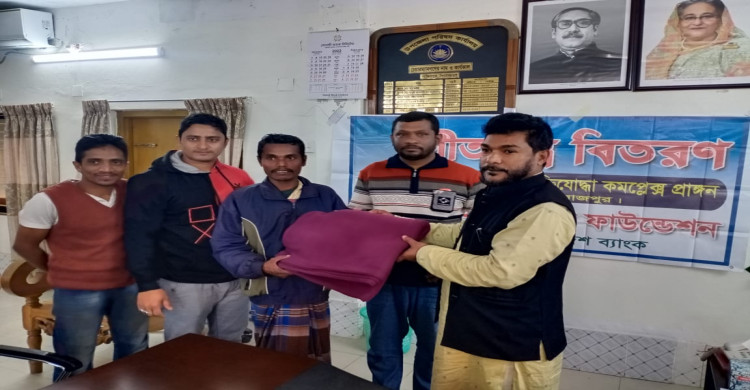 নাজিরপুরে মুক্তিযোদ্ধার সন্তান ফাউন্ডেশনের কম্বল বিতরণ