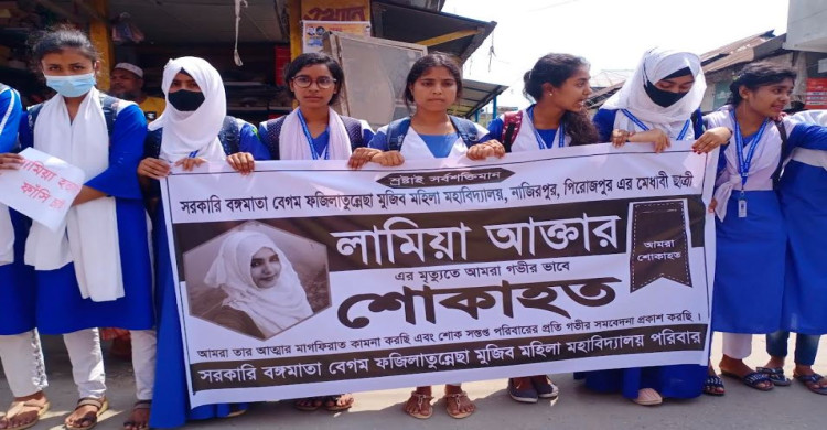 নাজিরপুরে লামিয়া হত্যার বিচারের দাবীতে মানববন্ধন
