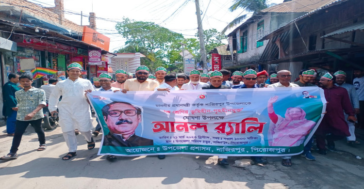 নাজিরপুরে ভূমিহীন-গৃহহীন মুক্ত হওয়ায় আনন্দ র্যালী