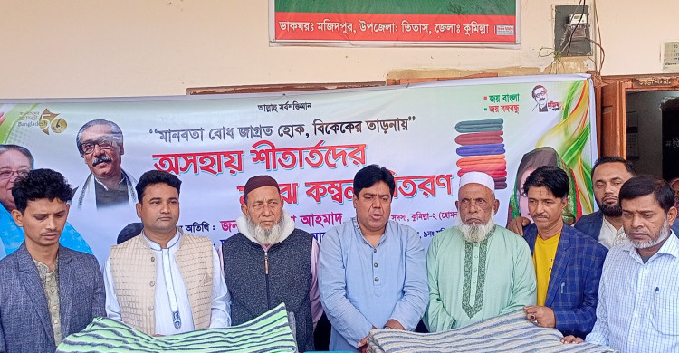 তিতাসে শীতার্তদের মাঝে কম্বল বিতরণ