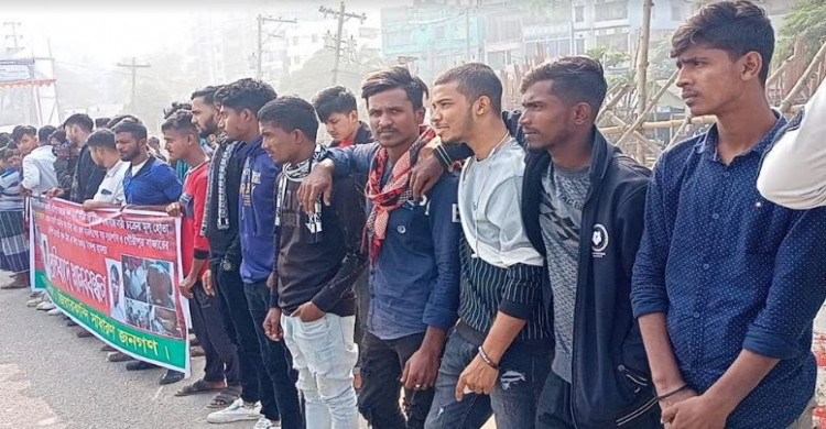 জেলা ছাত্রলীগের সহ-সভাপতির উপর হামলার প্রতিবাদে মানববন্ধন