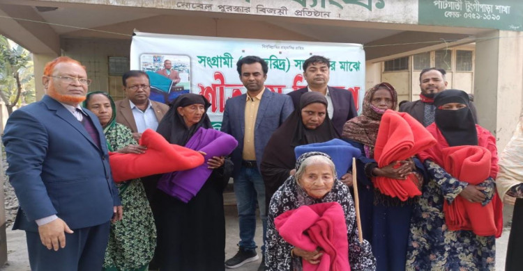 টুঙ্গিপাড়ায় শীতার্তদের মাঝে শীতবস্ত্র বিতরণ