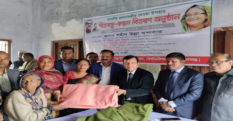 কোটালীপাড়ায় শীতার্তদের মাঝে কম্বল বিতরণ