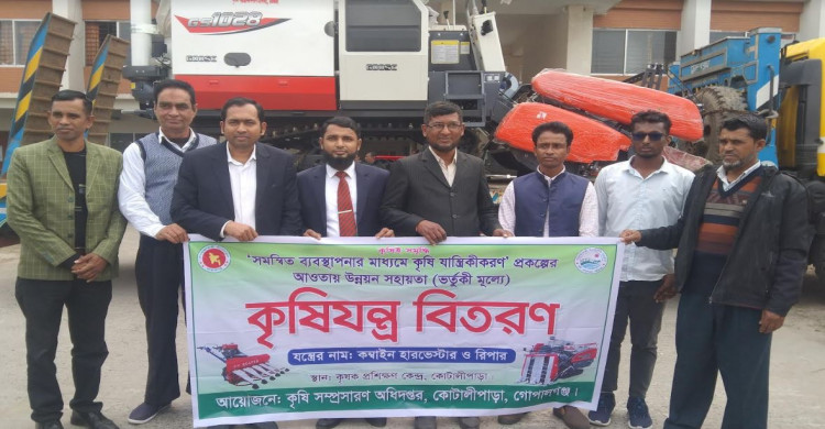 কোটালীপাড়ায় কৃষকদের মাঝে হারভেস্টার মেশিন বিতরণ