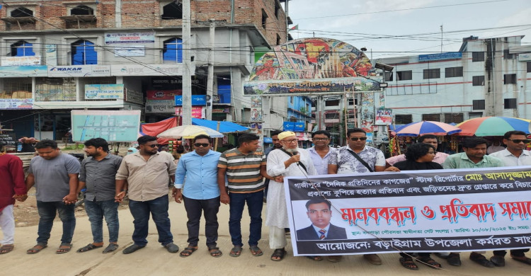 গাজীপুরে সাংবাদিক হত্যার প্রতিবাদে বড়াইগ্রাম সাংবাদিকদের মানববন্ধন