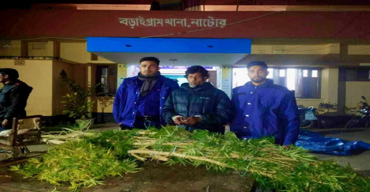 নাটোরের বড়াইগ্রামে ১৭ কেজি ওজনের ১০ ফুট দৈর্ঘ্য গাঁজা গাছ উদ্ধার, আটক ১