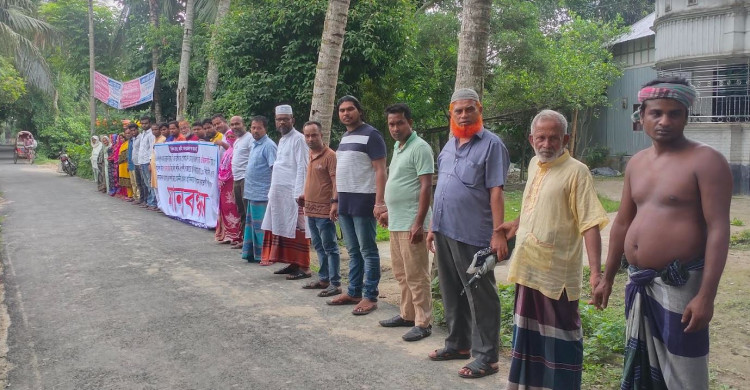 ফরিদপুরে সাবেক উপজেলা চেয়ারম্যান কর্তৃক জবরদখলকৃত জমি উদ্ধারে দাবীতে মানববন্ধন