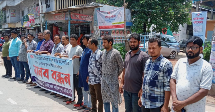 ফরিদপুরে ডিবিসি নিউজ প্রডিউসার আব্দুল বারীর হত্যাকারীদের আটক ও দৃষ্টান্তমূলক বিচারের দাবিতে মানববন্ধন