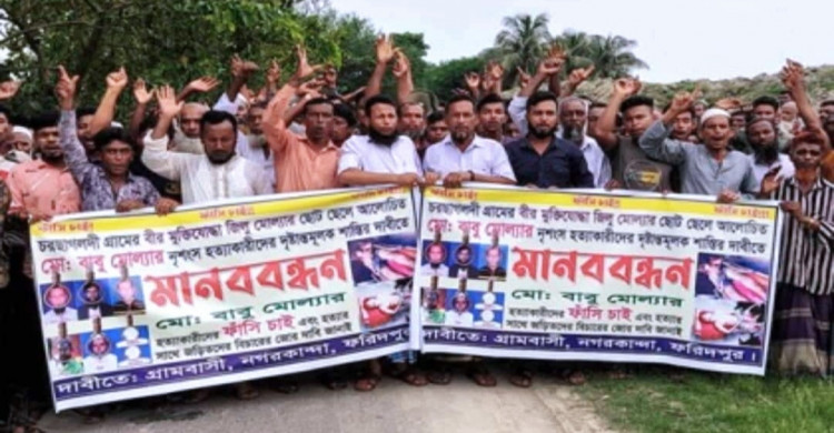 ফরিদপুরে আলোচিত বাবু মোল্লার হত্যাকারীদের গ্রেফতারের দাবিতে মানববন্ধন ও বিক্ষোভ মিছিল