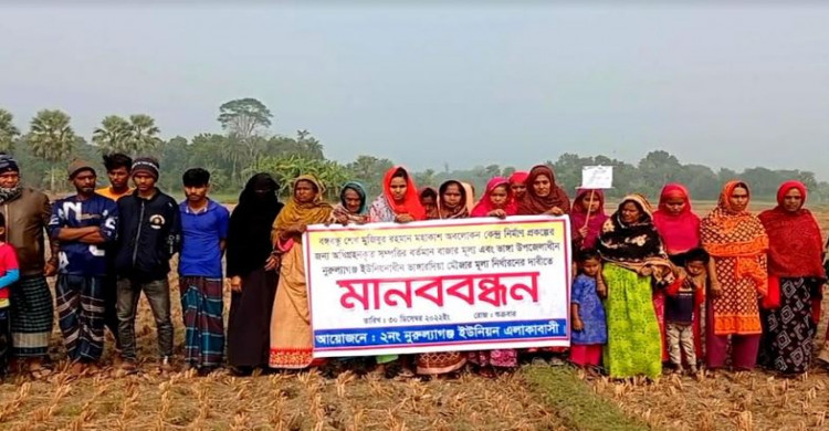 ফরিদপুরে অধিগ্রহণকৃত জমির ন্যায্যমূল্য দাবিতে মানববন্ধন