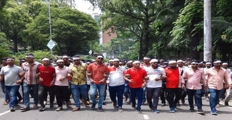 সাভারে ৬ দফা দাবিতে স্বাস্থ্য সহকারীদের অবস্থান কর্মসূচি