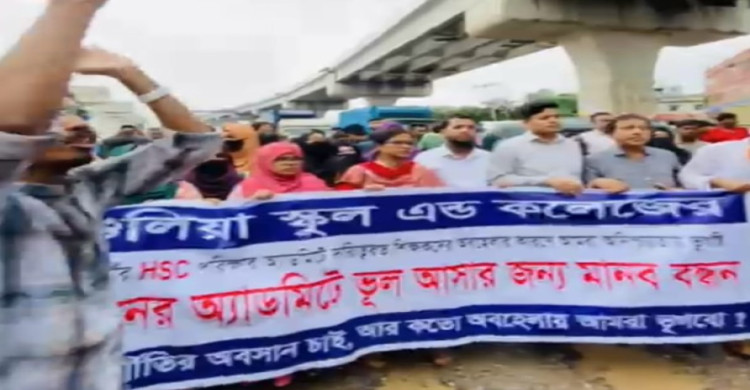 কলেজ কর্তৃপক্ষের অবহেলায় এইচএসসি পরীক্ষার্থীদের এডমিট কার্ডে ভুল বিষয়ে মানববন্ধন