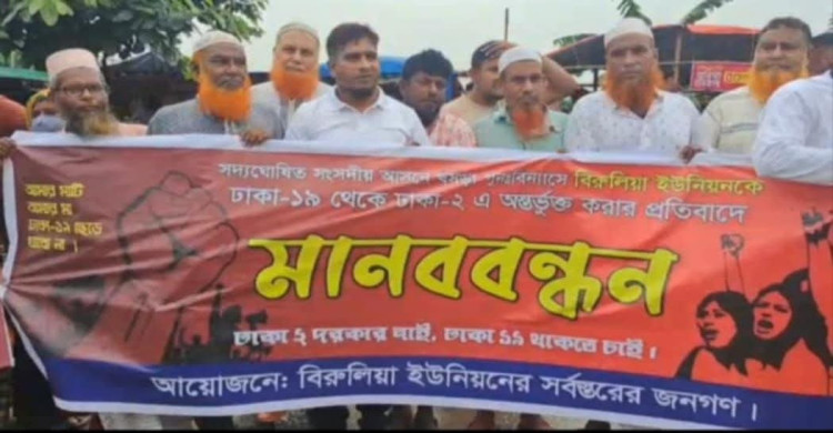 ঢাকা-২ সংসদীয় আসনে যেতে চায়না সাভারের বিরুলিয়াবাসী, প্রতিবাদে মানববন্ধন