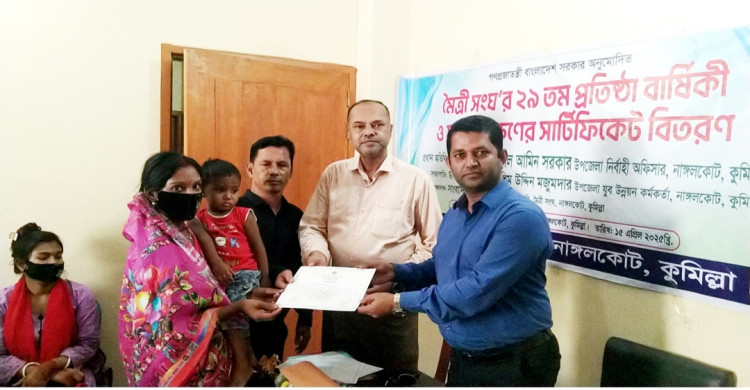 নাঙ্গলকোটে মৈত্রী সংঘ'র ২৯ তম প্রতিষ্ঠা বার্ষিকী ও যুব প্রশিক্ষণের সার্টিফিকেট বিতরণ