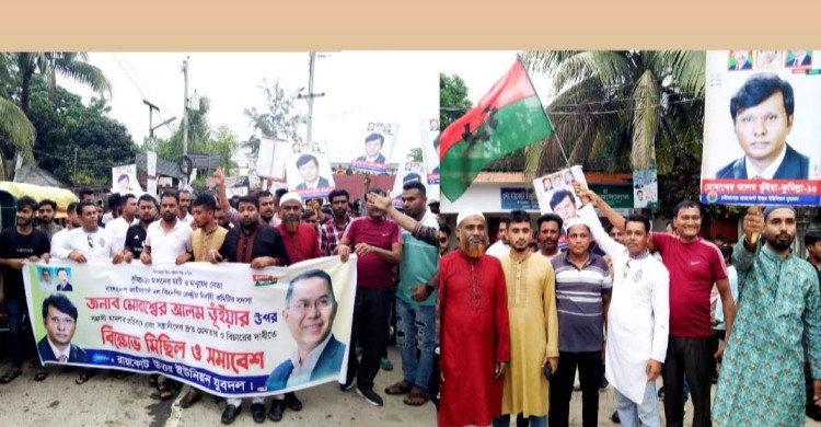 মোবাশ্বের আলম ভূঁইয়ার উপর হামলা প্রতিবাদে নাঙ্গলকোট মাহিনীতে বিক্ষোভ মিছিল
