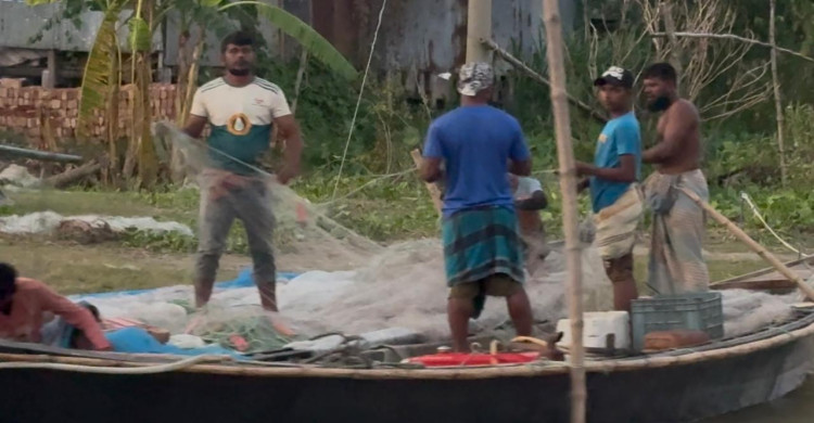 ইলিশ নিধনের ফাঁদ তৈরিতে ব্যস্ত জেলেরা