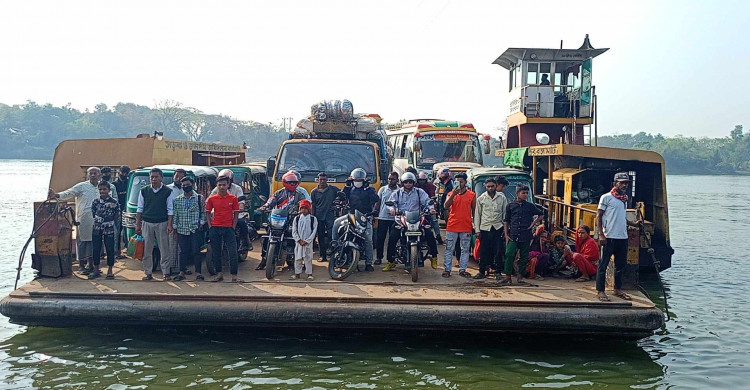 ৭২ ঘন্টা পর চন্দ্রঘোনায় ফেরি চলাচল শুরু