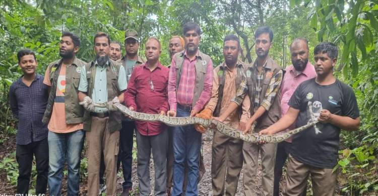 লোকালয় থেকে উদ্ধারকৃত বার্মিজ পাইথনটির নতুন ঠিকানা কাপ্তাই জাতীয় উদ্যান